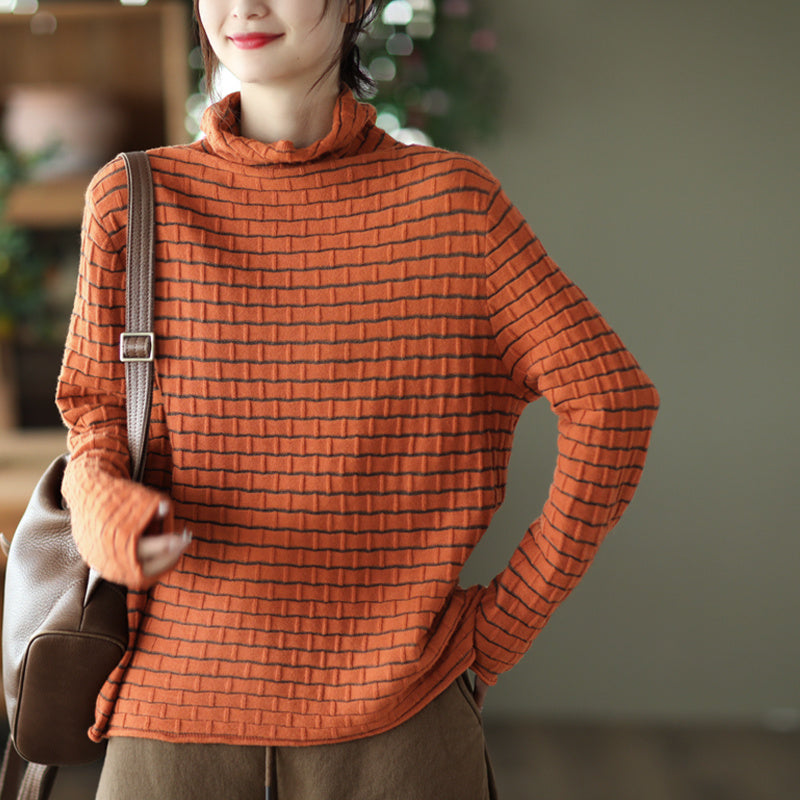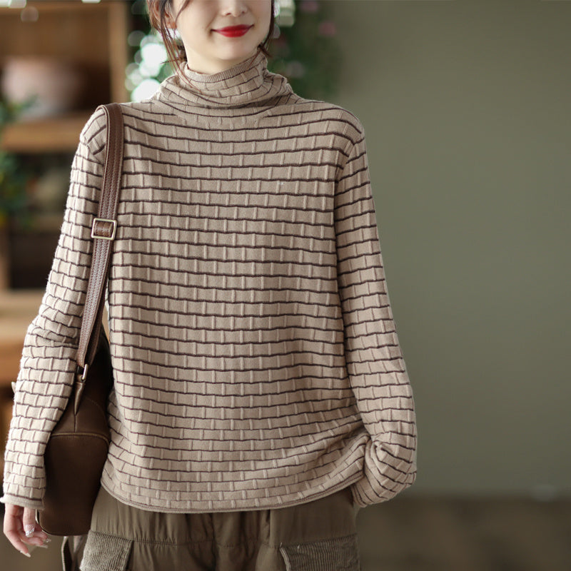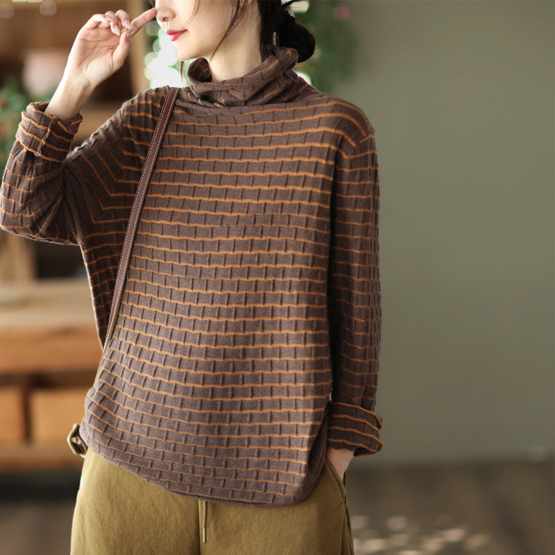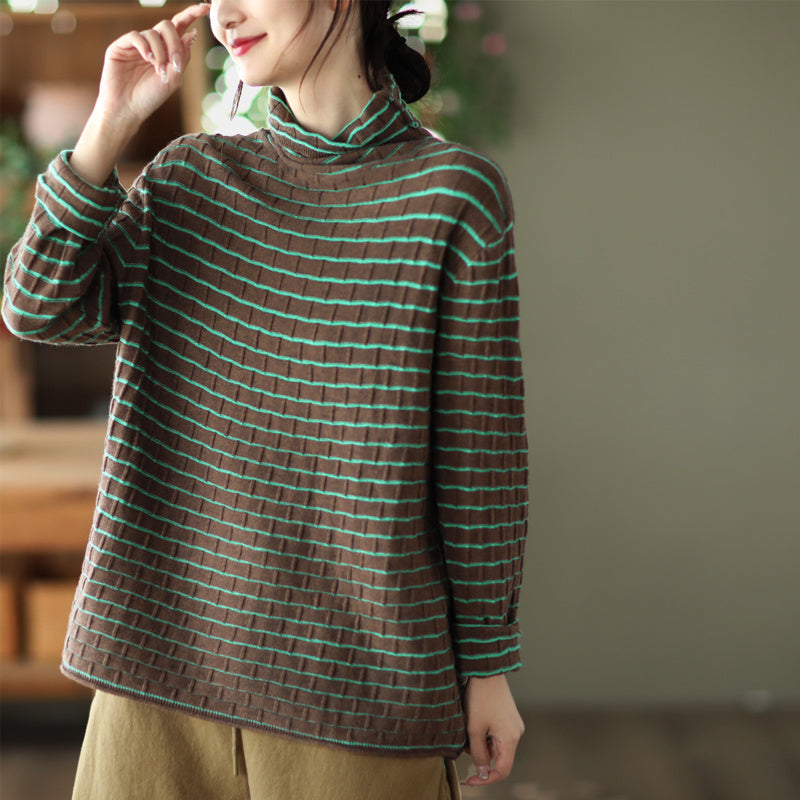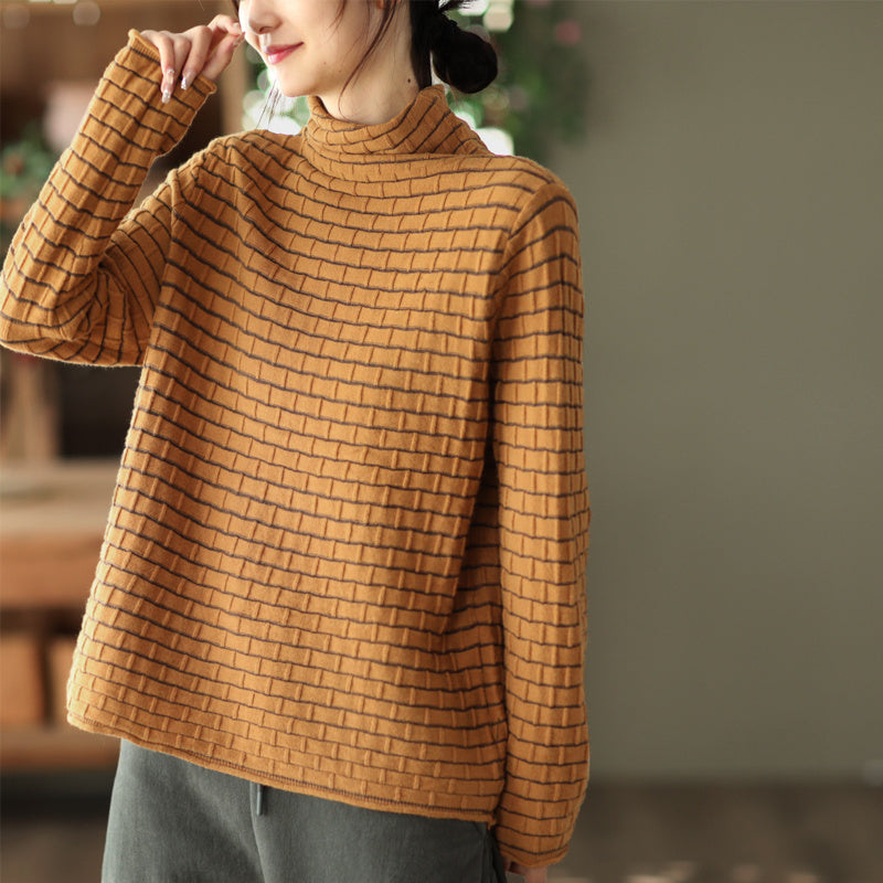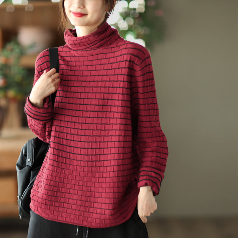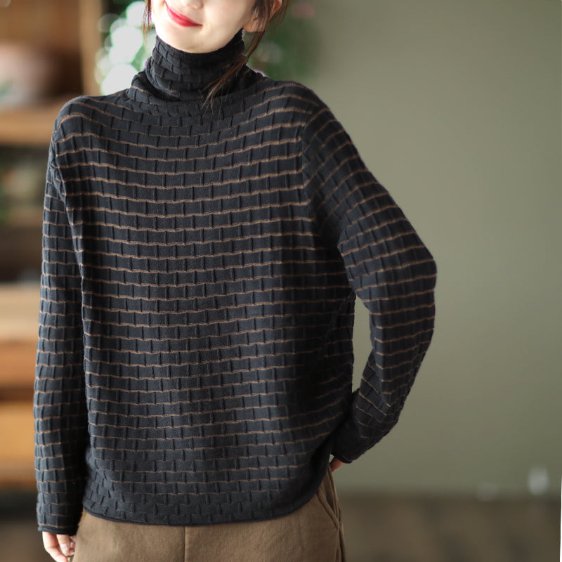 Black With High Collar Bottoming Shirt For Women Autumn Winter Retro 3D Knitting