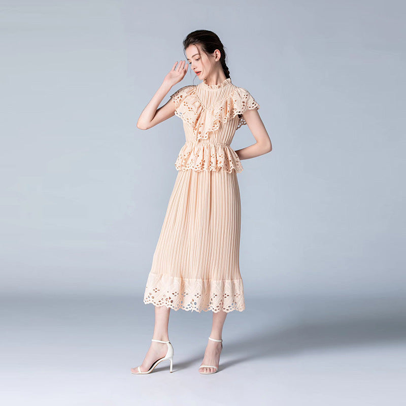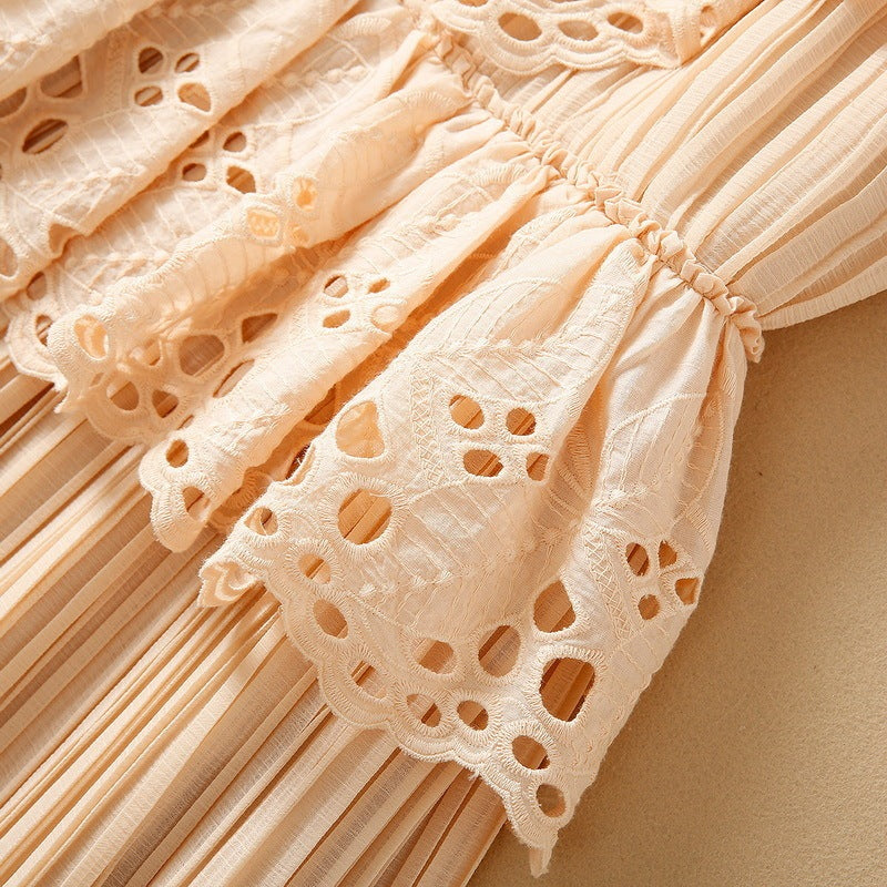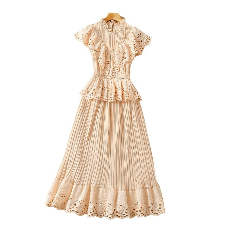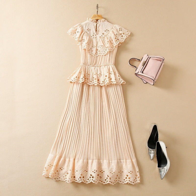 Heavy Industry Pleated Hollow Embroidered Ruffled Dress