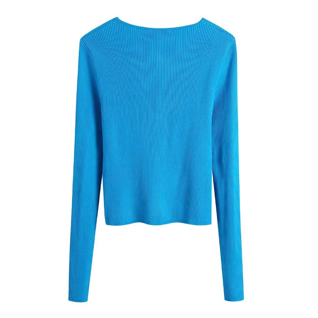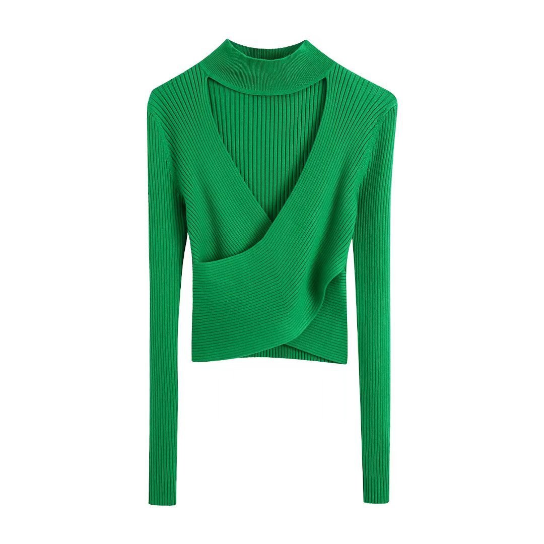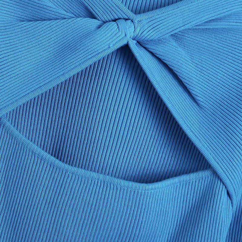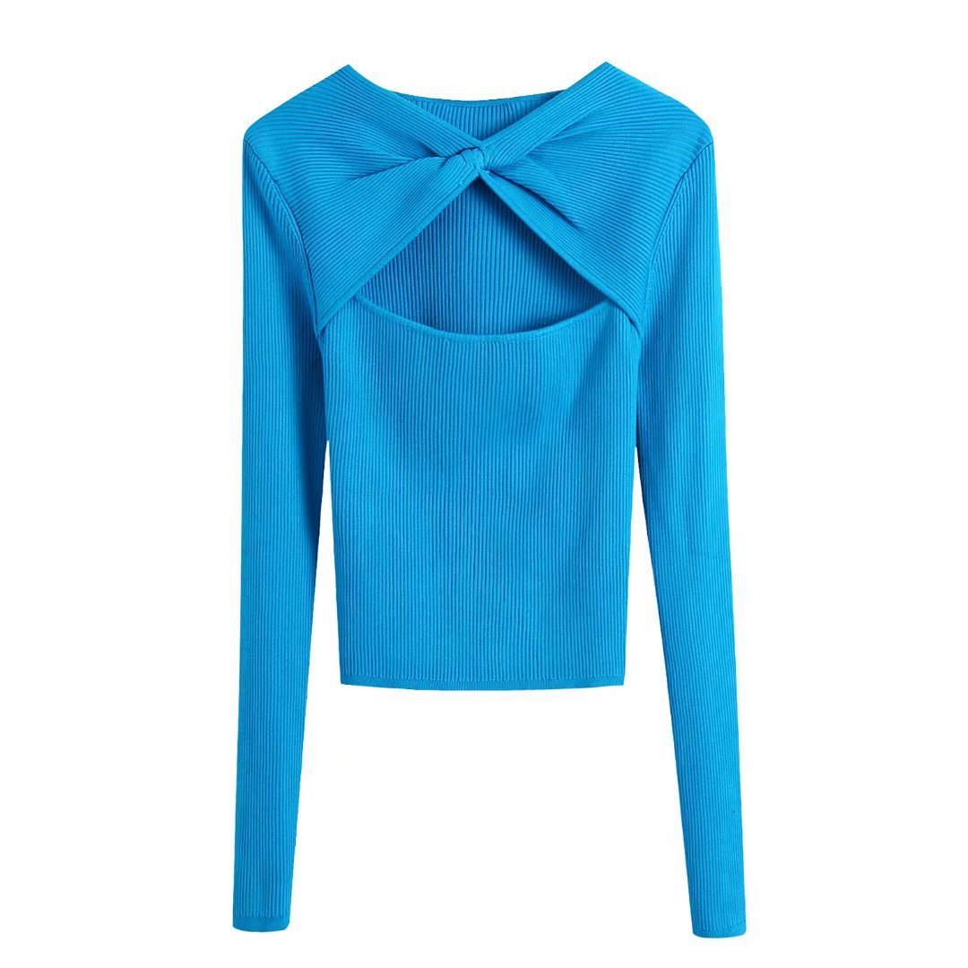 Ladies Fashion Knot Cutout Cropped Navel Knit Sweater