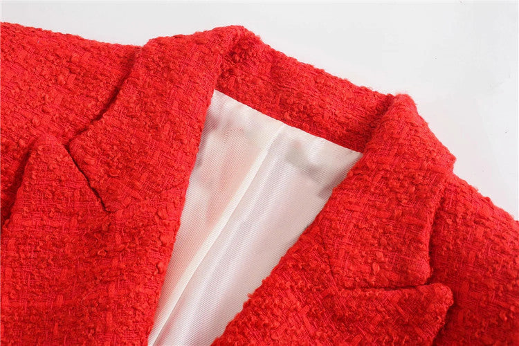 Simple Solid Color Waist Design Double-breasted Mid-length Blazer
