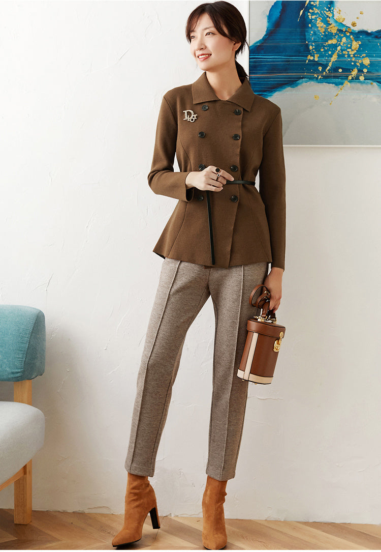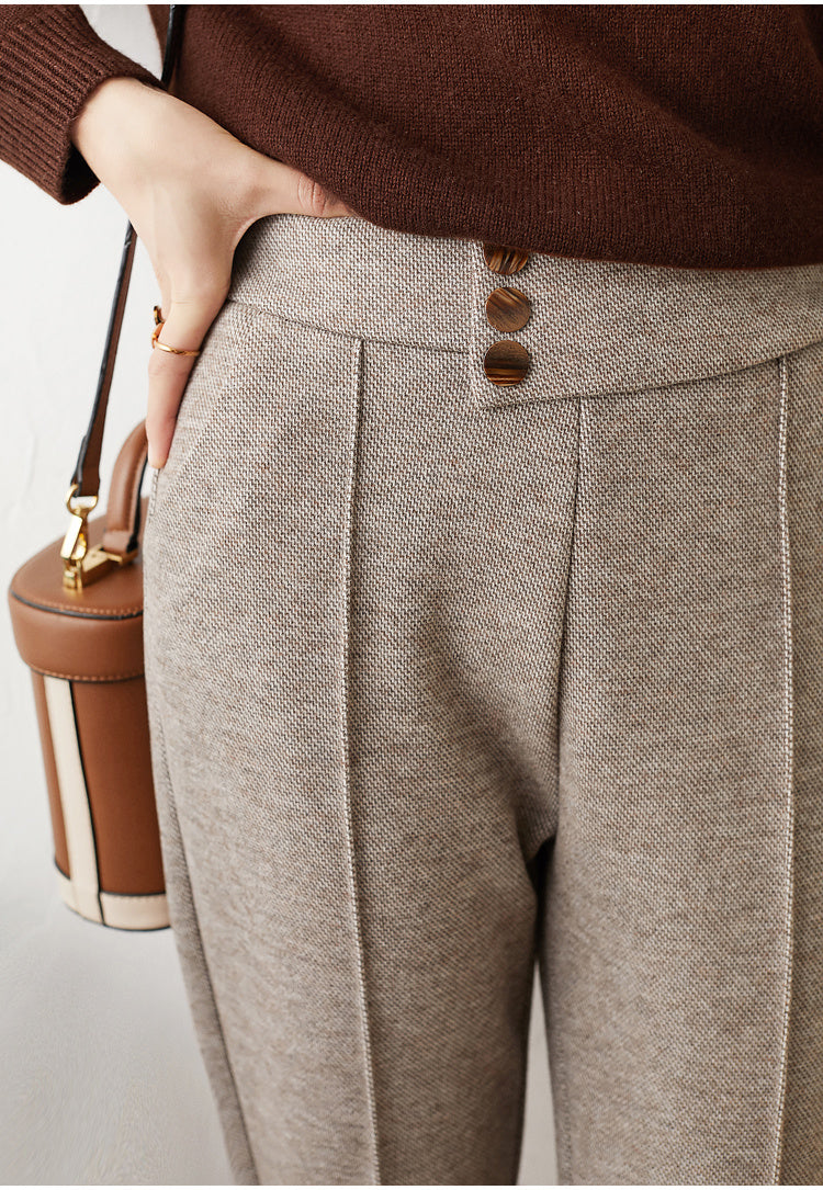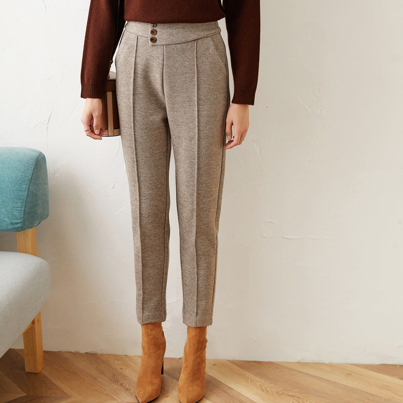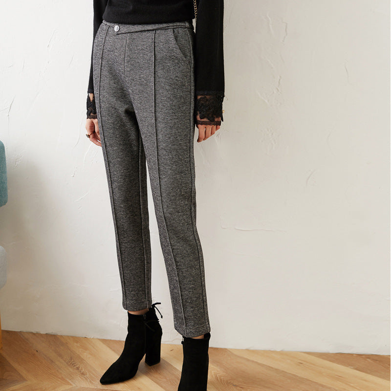 Women wear straight trousers outside in winter