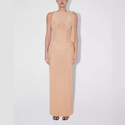 Flat Shoulder Asymmetric Ribbon Dress Slim-fit Sexy Sheath Dress